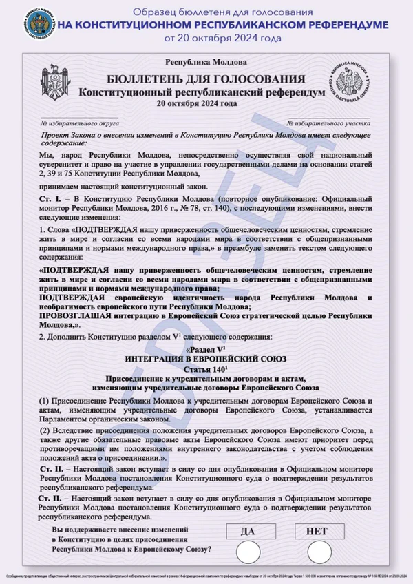 Вы поддерживаете внесение изменений в Конституцию в целях присоединения Республики Молдова к Европейскому Союзу?Центральная избирательная комиссия Республики Молдова