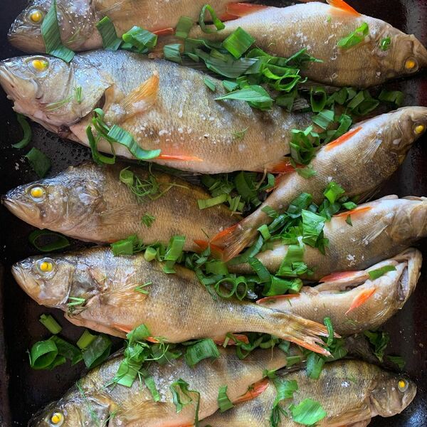 При вялении окуня как нежирную рыбу подвешивают вниз головой, чтобы жир не стекал вниз, а оставался в рыбе[261]. Если существует вероятность заражения дифиллоботриозом, увеличивается концентрация соли при солении окуня[267].