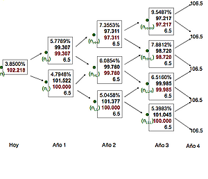 - ↑ 1 2 3 Pricing Interest Rate-dependent Financial Claims with Option Features, Ch 11. in Rendleman (2002), per Bibliography.