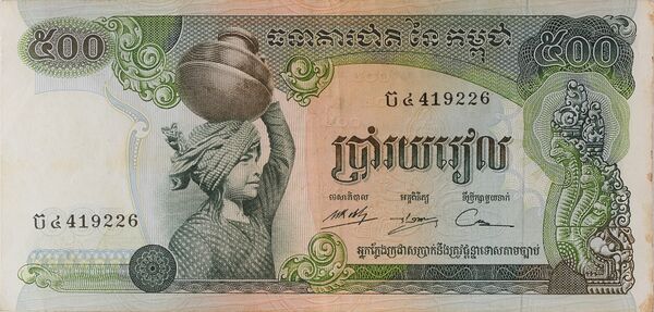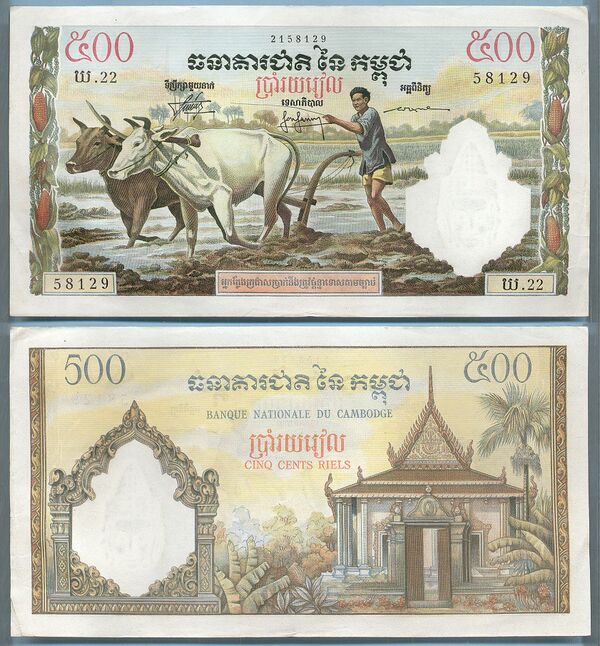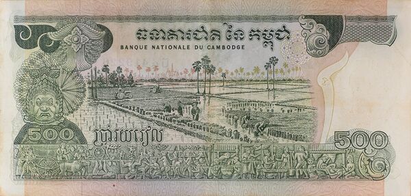 | 500 | 150×71 | красный | храмовый комплекс Ангкор-Ват, герб Государства Камбоджа | трактора на поле | 1991 | ||