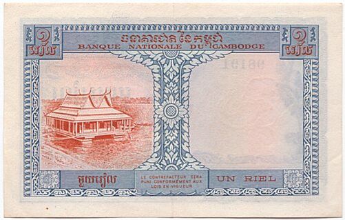 Денежная единица Камбоджи до 1955 года — индокитайский пиастр. 6 января 1955 года в обращение выпущен камбоджийский риель (= 100 сенам), равный пиастру. При режиме Пол Пота были отпечатаны банкноты нового образца, но в обращение не выпущены. 17 апреля 1975 года денежное обращение и банковская система отменены. В 1978—1980 годах в обращении использовались вьетнамские, таиландские и другие иностранные деньги. 20 марта 1980 года вновь утверждена национальная денежная единица — риель (= 100 сенов), 1 апреля 1980 года начат выпуск монет и банкнот.