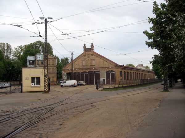 В 1903 году было построено депо в Задвинье на улице Крестовой. Оно состояло из трамвайного зала 55,6 × 22,4 м с шестью путями, котельной с дымовой трубой и жилого здания. В 1905 году это депо было перестроено для соблюдения требований автоматического пожаротушения. Рядом с ним в 1905—1912 годах была построена дизельная электростанция[2].