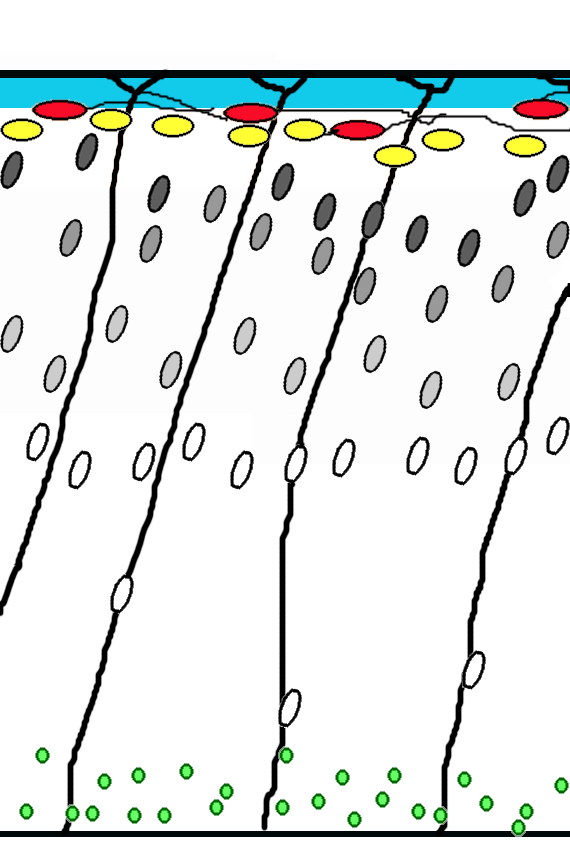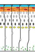 Предположительно, фосфорилированный DAB1 стимулирует перестройку актинового цитоскелета клетки и изменяет насыщенность клеточной поверхности рецепторами альфа-3-бета-1-интегрина, что снижает силу сцепления мигрирующего нейрона с волокнами радиальной глии. В одном исследовании делается вывод, что для правильного построения слоёв важно наличие бета-1 интегриновых рецепторов не на самих перемещающихся нейробластах, а в первую очередь на глиальных клетках.[74] Радиальная глия, по данным одного исследования, содержит столько же рецепторов ApoER2, как и нейроны, но вдесятеро меньшее число рецепторов VLDLR.[49]