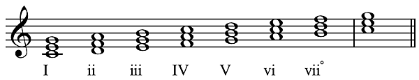 | Традиционная нотация | I | ii | iii | IV | V | vi | vii° |