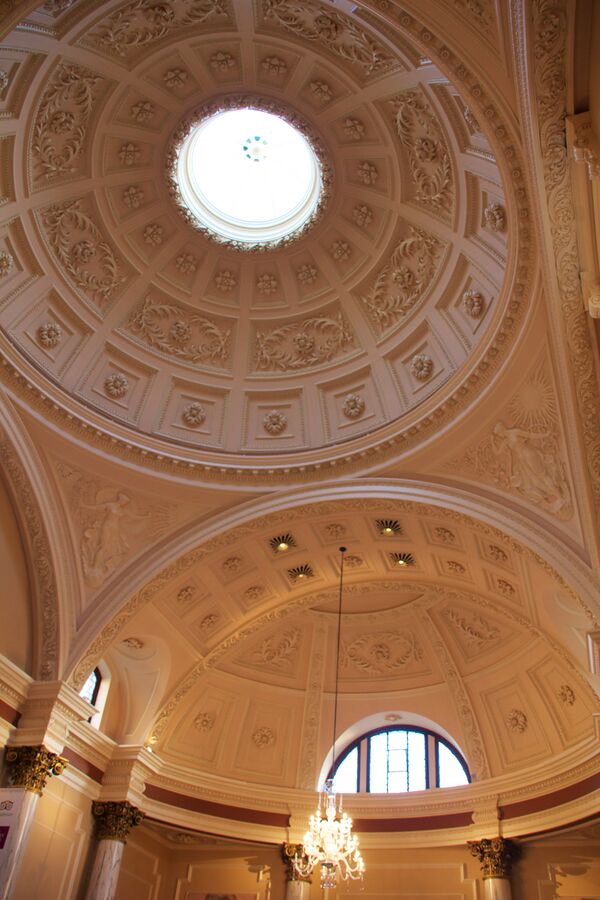 1897 года вход для посетителей осуществлялся через концертный зал, построенный по проекту Дж. М. Брайдона. Это здание представляло собой павильон со стеклянным куполом в центре.