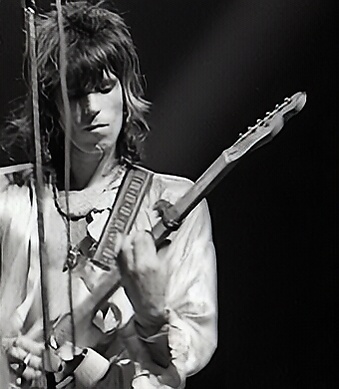 После замены Джонса гитаристом Миком Тейлором, который работал с Rolling Stones с 1969 по 1974, стиль игры Тейлора привёл к более явному разделению между ролями соло-гитары и ритм-гитары. В 1975 с заменой Тейлора Ронни Вудом, группа возвращается к стилю сочетания гитарных партий[15]:39, 180. Ричардс сказал, что годы игры с Вудом были наилучшим музыкальным периодом Rolling Stones. Ричардса, у которого имеется более тысячи гитар (на некоторых из них он ни разу не играл), часто ассоциируют с гитарой Fender Telecaster. Особенно с двумя 1950-го года выпуска Телекастерами, снабженными хамбакером фирмы Gibson.