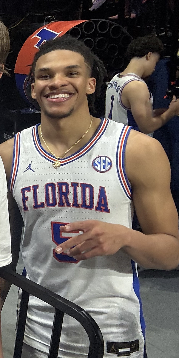 | 2024/25 | Флорида | SEC | SR | 40 | 40 | 31,6 | 48,7 | 35,9 | 84,4 | 4,6 | 1,9 | 1,7 | 0,3 | 13,3 |