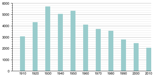 Из 889 домашних хозяйств 40,0 % представляли собой совместно проживающие супружеские пары (11,0 % с детьми младше 18 лет), в 15,2 % домохозяйств женщины проживали без мужей, в 5,8 % домохозяйств мужчины проживали без жён, 38,9 % не имели семьи. В среднем домашнее хозяйство вели 2,21 человека, а средний размер семьи — 2,78 человека. В одиночестве проживали 35,2 % населения, 17,3 % составляли одинокие пожилые люди (старше 65 лет)[7].