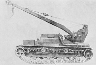 В кормовой части на поворотной платформе был установлен подъёмный кран. Масса крана составляла 3 тонны, длина стрелы 5500 мм, работа механизмов обеспечивалась системой электропривода. Максимальная грузоподъёмность, исходя из ставившихся перед машиной задач, не превышала 12 тонн. В походном положении стрела разворачивалась по ходу движения и закреплялась на рубке с помощью двух зажимов.[2]