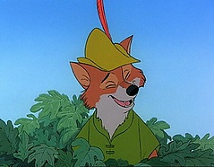 - Робин Гуд (англ. Robin Hood) — главный герой мультфильма. Лис. Робин — разбойник, авантюристичный по натуре, грабящий богачей, но лишь ради того, чтобы кормить бедняков Ноттингема. По характеру Робин Гуд бесстрашен и самоуверен, что также не мешает ему быть мягким и довольно романтичным, в основном, по отношению к его возлюбленной лисе Мариан. Изначально главным героем мультфильма должен был стать герой французской средневековой сатирической эпопеи — «Романа о Лисе» — лис Ренар, но Уолта Диснея беспокоил тот факт, что Ренар был, в основном, «пройдохой» и не слишком удачно подходит для роли главного героя[5][6]. Но позднее, когда аниматор Кен Андерсен создавал мультфильм, он позаимствовал у лиса Ренара некоторые детали характера при создании характера Робина[6][5]. На роль Робина прослушивался британский исполнитель Томми Стил, но сразу после начала записи голоса покинул картину. На роль также пробовался Терри Джонс[6].