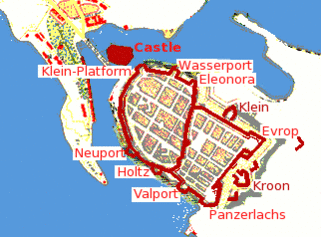 Из крепостных сооружений сохранились башня Ратуши, Круглая башня и бастион Панцерлакс. Основания городских стен можно увидеть на улицах Северный Вал, Южный Вал и Ладанова. На бастионе Панцерлакс возведено здание художественного музея и школы искусств, а на остатках бастиона Европ — здание ресторана Эспланад-павильон.