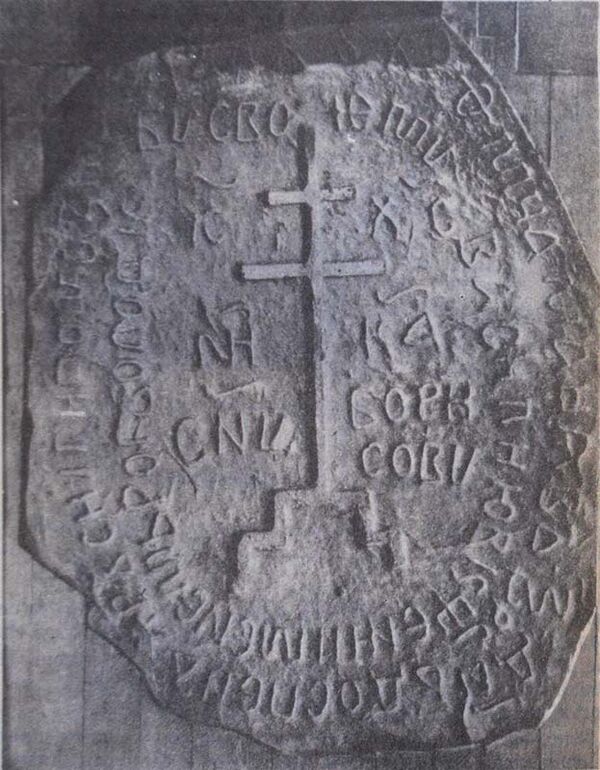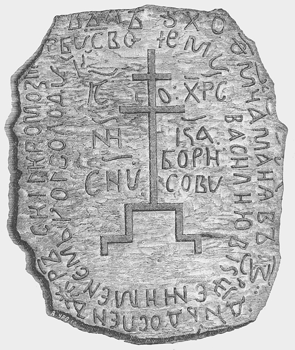- В том же самом 1792 году, когда был найден Рогволодов камень, на Таманском полуострове был обнаружен ещё один памятник древнерусского языка — так называемый Тмутараканский камень. В 1794 году А. И. Мусиным-Пушкиным был впервые опубликован текст надписи на этом камне, гласящий: «В лето 6576 индикта 6 Глеб князь мерил море по леду от Тмутороканя до Корчева 14000 сажен». Эта публикация и последующие исследования А. Н. Оленина положили начало русской эпиграфике и палеографии[19].