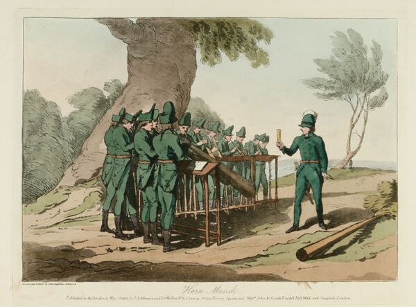 При вступлении на престол Александра I в 1801 году роговой оркестр вернулся в музыкальный обиход двора, придворные балы, парады, маскарады, разные празднества непременно проходили с участием роговой музыки, она стала вновь популярна. Личный роговой оркестр императора состоял тогда более чем из 300 рогов. Внимание этой русской диковине уделил Дж. Аткинсон в первом томе своего «Живописного изображения обыкновений, привычек и забав русских» (1803). Через четыре года другое изображение оркестра появилось и в популярном детском альманахе «Bilderbuch fur Kinder» (1807), издававшемся в Веймаре. В обоих случаях гравюры были снабжены описанием оркестра, что распространило о нём знания по Европе.