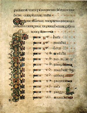 Родословие Иисуса Христа из Евангелия от Луки в Келлской книге |