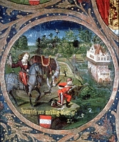 | 5. | Эрнст II Швабский | ок.1014 — 1030 | Герцог Швабии | На переднем плане — убийство во время охоты. На заднем плане — замок Фалькенштейн в Шварцвальде. | |