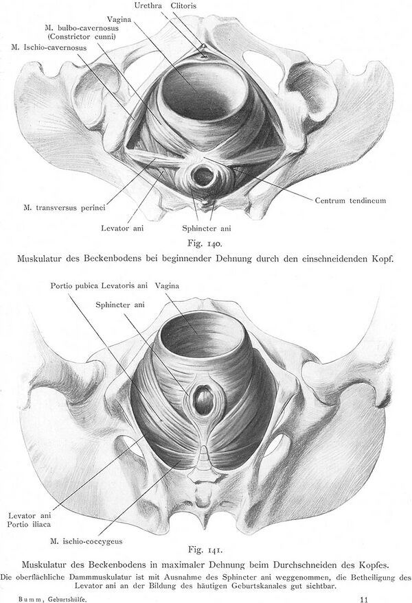 - сокращение поперечнополосатой мускулатуры брюшного пресса во время потуг, и