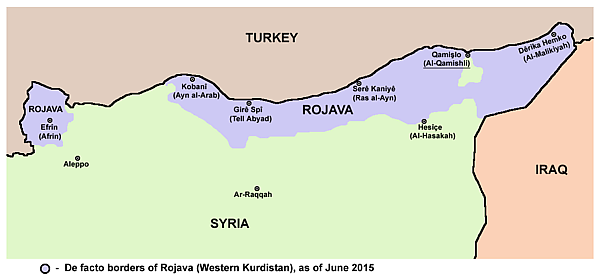 С лета 2012 года курдские районы на севере Сирии контролировались местными и региональными советами и курдскими вооружёнными формированиями (YPG) (под контролем правительства Башара Асада частично остались только Эль-Хасака и Эль-Камышлы).
