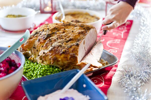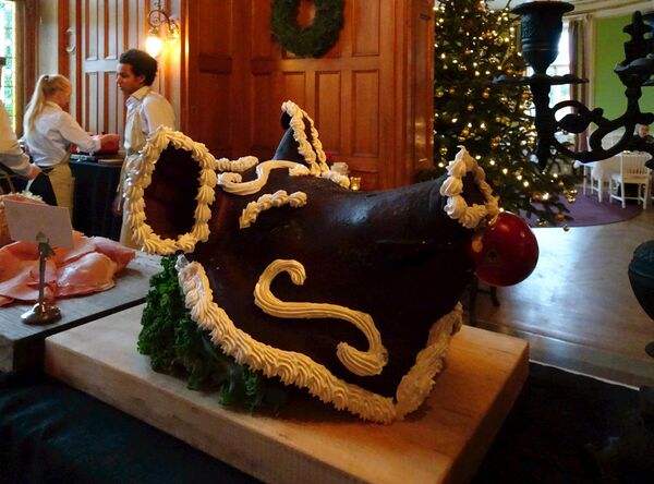 По мнению некоторых фольклористов и историков[3], происхождение рождественской ветчины в Англии это традиция, которая, скорее всего, была заложена на Британских островах англосаксами. Под звуки труб и пение менестрелей на золотом или серебряном блюде в зал заносили голову кабана с яблоком во рту[4].