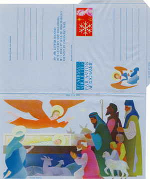 В 1975 году рождественские марки США вышли безноминальными, поскольку их печатали летом и чиновники почтового управления США не смогли заранее предсказать, какими будут к Рождеству почтовые тарифы[8][≡].