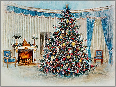 В американской политической жизни, несмотря на доминирующую практику отделения церкви от государства, сложилась давняя традиция отправки рождественских открыток из Белого дома на каждое Рождество от имени президента и первой леди[17]. Эта традиция восходит к президенту США Калвину Кулиджу, который стал первым президентом, сделавшим письменное послание с мирными известиями в Рождество 1927 года[17][18]. Президент США Герберт Гувер первым направил рождественские записки персоналу Белого дома, а Франклин Рузвельт стал первым президентом США, прибегнувшим к формату именно открытки (вместо ранее использовавшихся заметок или письменных посланий), который более всего напоминает сегодняшние рождественские открытки[17].