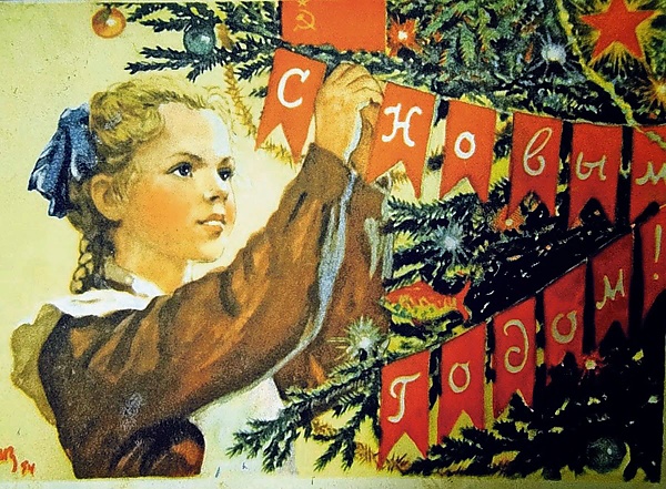 Серийный выпуск новогодних открыток наладился в 50-х годах: на них была надпись «С Новым годом» на фоне кремлёвских звёзд и Деда Мороза. Но рождественских открыток среди них уже не было. В России они начали возрождаться только в конце XX века. Часто это были репродукции со старинных открыток, созданных ещё до революции[16].