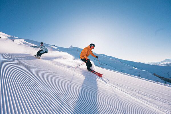 Горнолыжная зона комплекса предлагает для катания 52 трассы[35] различной сложности — от зелёных до чёрных — общей протяжённостью 105 км[36]. Самой длинной является трасса «Панорама» (5015 м). Перепад высот составляет 1569 м[37]. На курорте работает 32 подъёмника, обеспечивающие пропускную способность в десятки тысяч человек в день[38]. Действующая система искусственного оснежения трасс является одной из крупнейших в Европе и обеспечивает продолжительность лыжного сезона до 180 дней в году, в зависимости от высоты пролегания трасс.