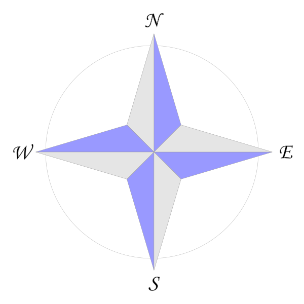 | Восьмилучевая роза ветров | 16-лучевая роза ветров | 360-лучевая роза ветров | Роза ветров с числовыми значениями и дополнительными пометками |