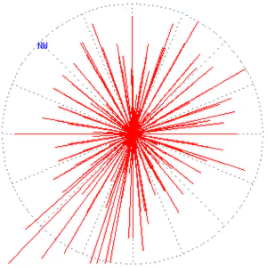 | Здесь подразумевается такое же расположение сторон света, как на компасе. На каждом из лучей отмечена точка, расстояние от которой до центра являет собой (в определённом оговоренном масштабе) количество дней за прошедший месяц, когда преобладал ветер данного направления. Точки на лучах соединены между собой и полученный многоугольник заштрихован. | Стороны света указаны в виде буквенных обозначений. Каждый из 16 лучей, характеризующий то или иное направление, изображается как отрезок, на котором в масштабе отмечена средняя скорость для каждого направления ветра за истекшие сутки. | Изображение автоматически сгенерированное метеорологической программой на основании показаний приборов. На диаграмме отображена графически максимальная скорость ветра за отчётный период. | На каждом из лучей длина отрезка дублируется в виде числового значения, которое описывает количество дней за определённый период, когда преобладал ветер данного направления. Знаки на концах отрезков обозначают максимальную скорость ветра. Число в центре диаграммы характеризует количество безветренных дней. Судя по диаграмме, период составлял 90 дней, из которых 8 дней было безветренно, 70 дней отмечены на направлениях числами, остальные 12 дней и два направления, видимо, посчитали малозначащими и числами отмечены не были. |
