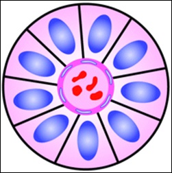 Розетка это клеточная структура, состоящая из клеток, окружающая центральное «ядро» в виде «колеса со спицами». Центр розетки может иметь кажущийся пустым просвет или быть заполненным цитоплазматическими отростками окружающих клеток. Цитоплазма каждой клетки розетки часто имеет форму клина, направленного в центр розетки, ядра клеток находятся на периферии и образуют кольцо или «нимб» вокруг розетки.[2]