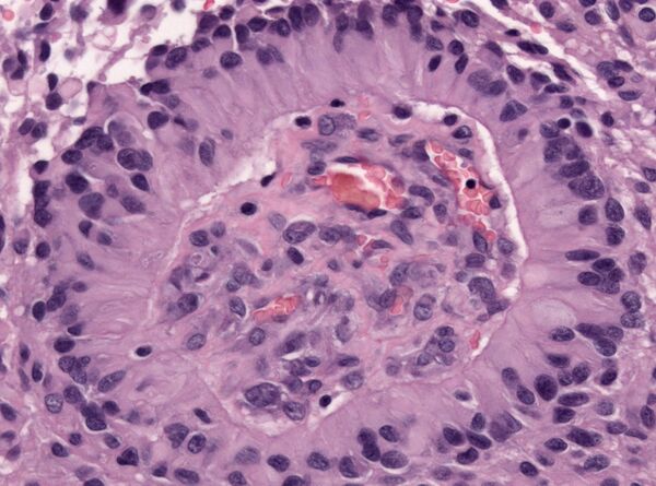 Наличие этой розетки в гистологическом препарате с высокой вероятностью говорит о эпендимальной дифференцировке опухоли.[2]