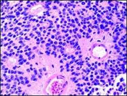 Периваскулярные псевдорозетки встречаются в большинстве эпендимом независимо от степени злокачественности или варианта. Они значительно более важны для диагностики эпендимомы, чем истинные эпендимальные розетки. Но к сожалению, периваскулярные псевдорозетки менее специфичны — они также встречаются в медуллобластомах, PNET, центральных нейроцитомах и, реже, в глиобластомах, а также в редких детских опухолях, мономорфных пиломиксоидных астроцитомах.[2]