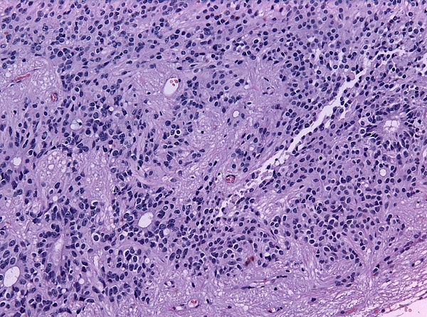 Гистологические характеристики этих двух опухолей (пинеоцитом и центральных нейроцитом) практически идентичны, включая их склонность к образованию богатых нейропилем розеток, называемых пинеоцитоматозными/нейроцитарными розетками. Обе они очень похожи на розетки Гомера Райта, но в целом они больше и имеют более неправильный контур. Клетки пинеоцитоматозных/нейроцитарных розеток также считаются гораздо более дифференцированными, чем клетки, образующие розетки Гомера Райта, в том смысле, что ядра немного больше, более округлые, гораздо менее митотически активные и более бледные или менее гиперхроматические. В редких случаях эти розетки могут собираться в лист смежных кластеров, напоминающих булыжную мостовую.[2]
