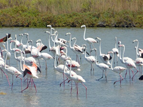 Розовый фламинго предпочитает солёные лагуны и солончаки, населяет крупные мелкие солёные и щелочные внутренние озёра[3][21].