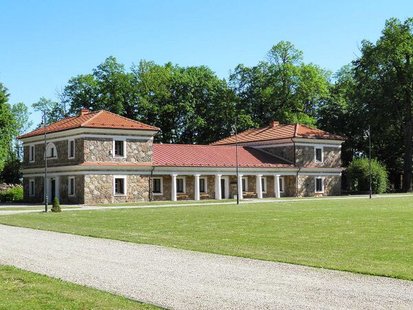 В 1880 году после смерти графа Райнольда Тизенгауза имение перешло к его сестре Марии Пшездецкой-Тизенгауз. В 1905 году Йонасом Пшездзецким главный усадебный дом был перестроен по проекту архитекторов К. Янковскиса (лит. Karolis Jankovskis) и П. Липопаса (лит. Pranciškus Lilpopas)[2]. Был надстроен второй этаж, выполнена внутренняя перепланировка помещений, изменён фасад. Дворец приобрел черты необарокко и неоготики, но цельность ансамбля осталась не нарушенной[6].