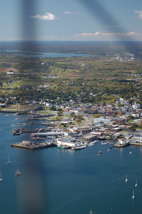 Город расположен на берегу бухты Пенобскот залива Мэн Атлантического океана.