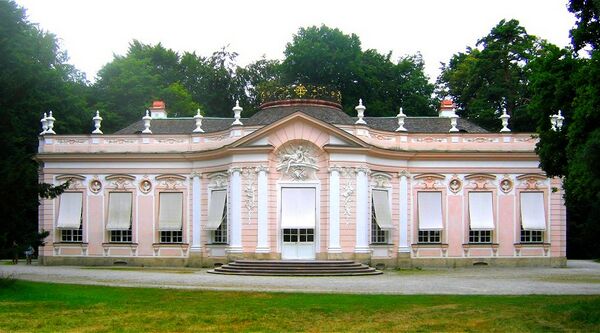 Отбросив помпезность и напыщенность искусства времён Людовика XIV, архитектура малых, камерных форм стиля рококо стремится быть лёгкой, приветливой, игривой. Архитекторы и рисовальщики не заботятся ни об органичном сочетании и распределении частей сооружения, ни о целесообразности их форм, а распоряжаются ими произвольно, вплоть до каприза, избегают симметрии, без конца варьируют расчленения и орнаментальные детали. Поэтому специалисты именуют основной принцип формообразования в стиле рококо не тектоничным, а «вариационным». Динамичность, которую находят в обоих стилях (барокко и рококо), — писал В. И. Локтев, — не одна и та же. Динамика барокко — в резких контрастах, рококо — в вариационности и моторности…". В интерьерах стиля рококо используются анфилады, которые являются открытием Ренессанса, но по-особенному. Перед зрителем развёртывается «бесконечный вариационный ряд». «Ренессансный зритель предпочитал оставаться в начале анфилады и любоваться уходящей перспективой, а зритель рококо — продвигаться по ней, „нанизывая“ одну вариацию на другую»[13].