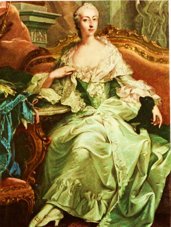 Эпоха рококо принесла моду на пастельные, приглушённые (по сравнению с эпохой барокко) тона: нежно-голубой, бледно-жёлтый, розовый, серо-голубой. Если в эпоху барокко все женщины выглядят значительными и зрелыми (им как будто всем за тридцать), то рококо — это время юных нимф и пастушек, которым никогда не будет больше двадцати. Румяна и пудра помогают всем дамам выглядеть молодыми, хотя эти лица и превращаются в безжизненные маски. Модные запахи, духи, — фиалковый корень, нероли, пачули, розовая вода.
