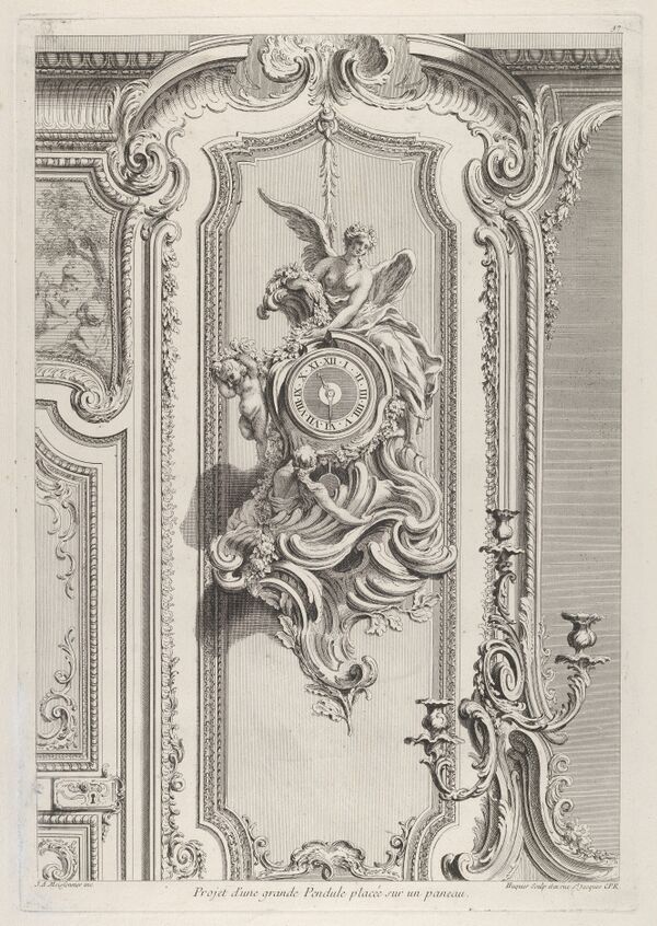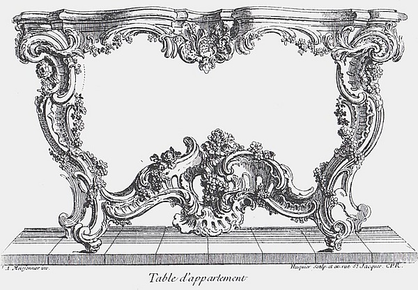 В переходный период Регентства после роскоши «большого стиля» времени правления Людовика XIV, скончавшегося в 1715 году, искусство переместилось из дворцовых пространств Версаля в камерные салоны и гостиные парижской знати. Второй причиной камерности «стиля рокайля» является происхождение основного декоративного элемента от растительного завитка. Рококо — оригинальное французское изобретение, выпадающие из основной линии эволюции больших постренессансных архитектурных стилей: классицизм — барокко — неоклассицизм. Ещё одна особенность заключается в том, что даже в Париже стиль рококо формируется в 1740-х годах и далее развивается параллельно с нарождающимся неоклассицизмом позднего «стиля Людовика XV» и периодом правления Людовика XVI (1774—1792). В эпоху Просвещения отношение к нему было весьма критичное. Так, Д. Дидро называл этот стиль «временем испорченного вкуса»[7]. Эстетика переходного периода отражена в письме от 7 апреля 1770 года французского мастера Жака Ретье Третьего, изготавливавшего для Екатерины II в 1770—1774 годах серебряный сервиз, позднее названный «Орловским» (сохранившиеся предметы хранятся в Государственном Эрмитаже). Это письмо отразило смену вкусов, происходившую в то время во Франции: «…поскольку Её Императорское Высочество желает, чтобы отказались от всех видов фигур и картелей, мы приложим все усилия, чтобы заменить их античными украшениями и следуя лучшему вкусу, согласно пожеланиям…» (цит. по документу из РГИА).
