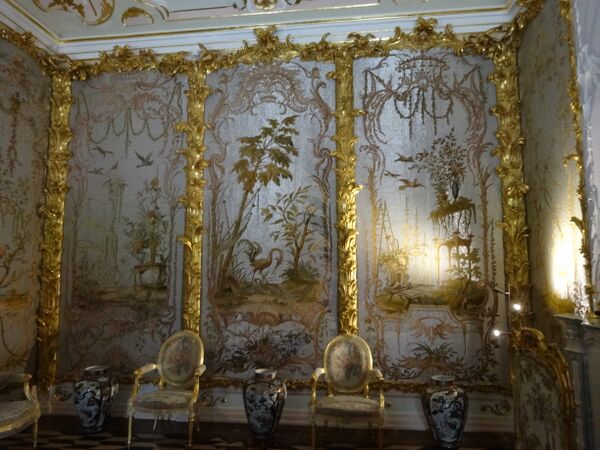 Отсюда столь важное значение зеркал, отражающихся друг в друге и делающими, как и падуги, незаметными переходы от одного объёма к другому. Таким образом, человек, вступающий в интерьер стиля рококо, попадает в зыбкий, непостоянный и очень сложный мир бесконечных вариаций.