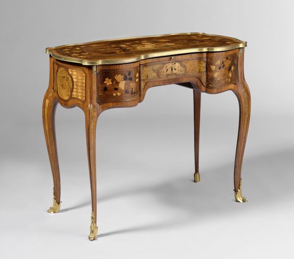 Мебель рококо отличается изысканными контурами, изогнутыми линиями, ножками типа кабриоль, украшениями маркетри и бронзовыми золочёными рокайльными накладками. Характерны небольшие консольные столики, секретеры, бюро, комоды, шифоньеры, кушетки Дюшес-бризе (фр. duchesse brisée — разбитая герцогиня). Два наиболее распространенных типа кресел — «Бержер» и «Маркиза». Знаменитым произведением эпохи является Королевское бюро (фр. Bureau du Roi) — цилиндрическое бюро, шедевр мебельного искусства Франции XVIII века, созданный для короля Людовика XV выдающимся мастером-мебельщиком Ж.-Ф. Эбеном в 1760 году по рисунку Жан-Клода Дюплесси и законченное Жан-Анри Ризенером в 1769 году. Бюро с цилиндрической крышкой украшено маркетри, вызолоченными бронзовыми деталями и плакетками севрского фарфора.