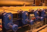 При индивидуальном приводе каждый ролик (или два) данной секции рольганга приводится от отдельного электродвигателя. Такие ролики широко применяют в быстроходных транспортных рольгангах для передвижения раскатов, длина которых после прокатки значительна, а также в качестве первых роликов рабочих рольгангов у обжимных станов[3].