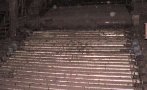 Также роликовые конвейеры (как правило, приводные) применяют для транспортировки сырых окатышей от окомкователя до обжиговой машины (на илл.). Более распространённое название для такого рольганга, одновременно выполняющего функцию грохочения, — роликовый питатель.