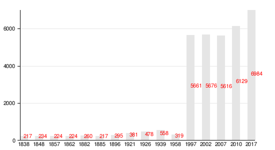В конце 1924 года в деревне числилось 151 мужского и 170 женского пола, всего 321 прихожанин Рябовской лютеранской церкви[31].