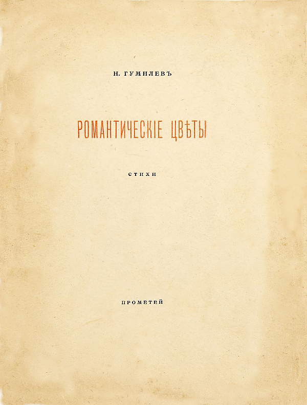 Первое издание «Романтические цветы» вышло с посвящением Анне Андреевне Горенко. В сборник вошло 32 стихотворения[2]. Три из них в дальнейшие издания не включались, одно было включено в сильно урезанном виде.