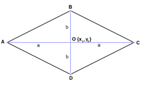 Уравнение ромба с центром в точке и диагоналями, параллельными осям координат, может быть записано в виде[8]: