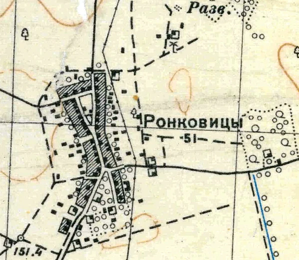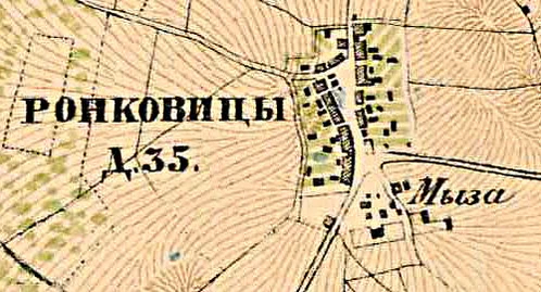 На карте Ф. Ф. Шуберта 1844 года упомянута, как деревня Ронковицы, состоящая из 32 крестьянских дворов[7].
