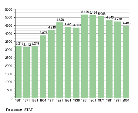 Население составляет 4493 человека (2008), плотность населения — 147 чел./км². Занимает площадь 31 км². Почтовый индекс — 16019. Телефонный код — 010.