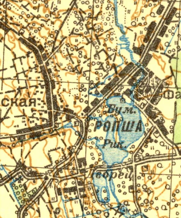 РОПШИНСКИХ ФАБРИКАНТОВ — слобода удельная при речке Стрелке, там же, в 19 верстах от Петергофа, число дворов — 31, число жителей: 304 м. п., 339 ж. п.;