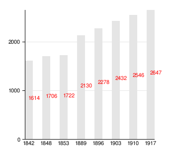 Изменение численности населения лютеранского прихода Ропсу с 1842 по 1917 год[15]: