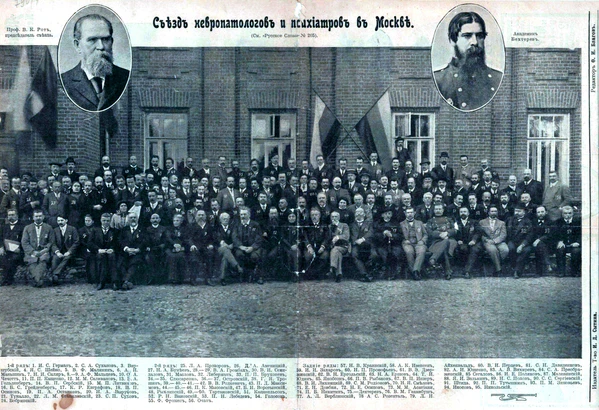 В январе 1887 г. в Москве состоялся Первый съезд Отечественных психиатров (проходил одновременно со II съездом Пироговского общества врачей России) для разработки практических вопросов психиатрии. Съезд впервые собрал 92 психиатра и невропатолога со всей России. На съезде прозвучал 31 доклад по актуальным вопросам психиатрии. Не было создано организации, которая бы заботилась о работе между съездами. Поэтому постановления съезда остались невыполненными и организовать следующий психиатрический съезд не удавалось.
